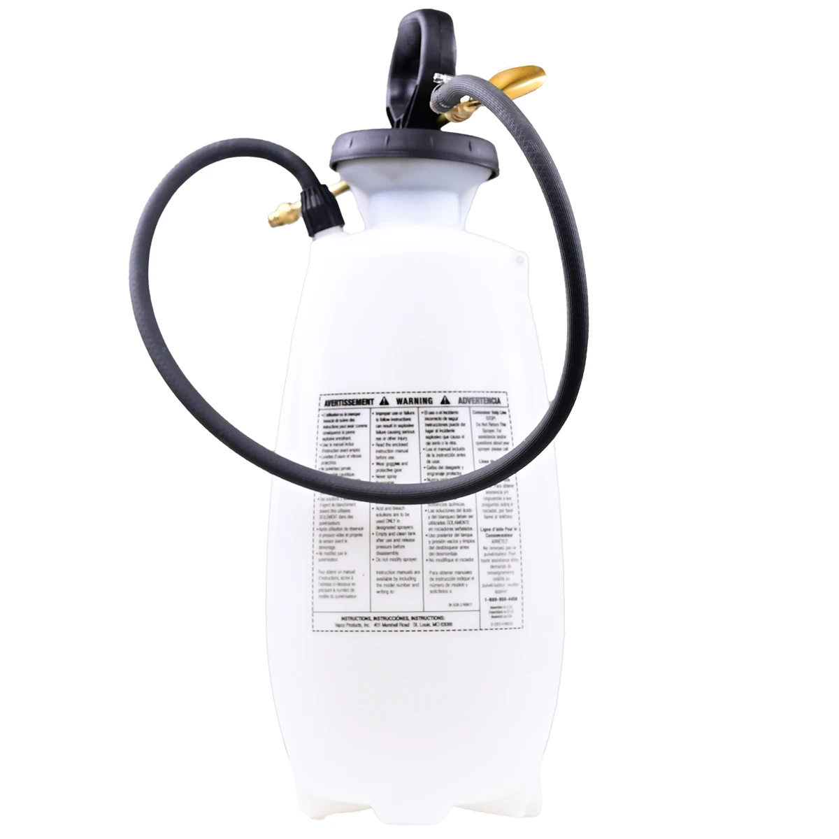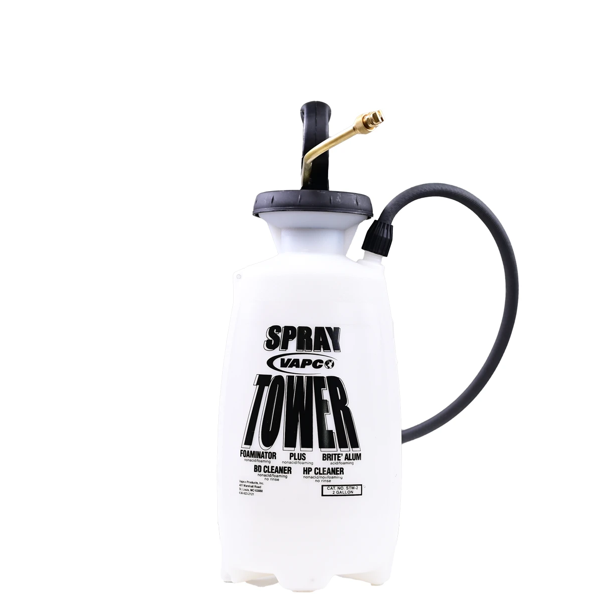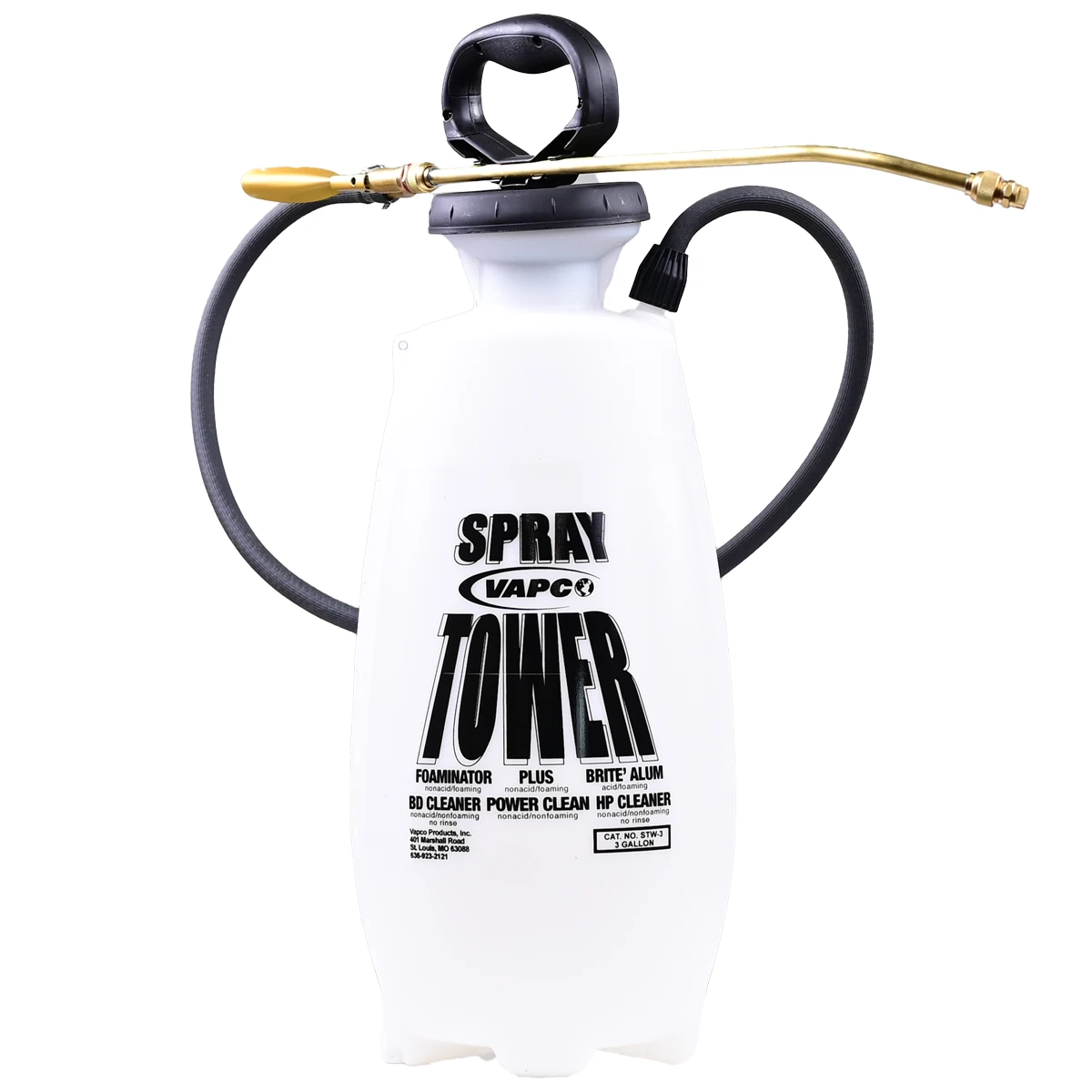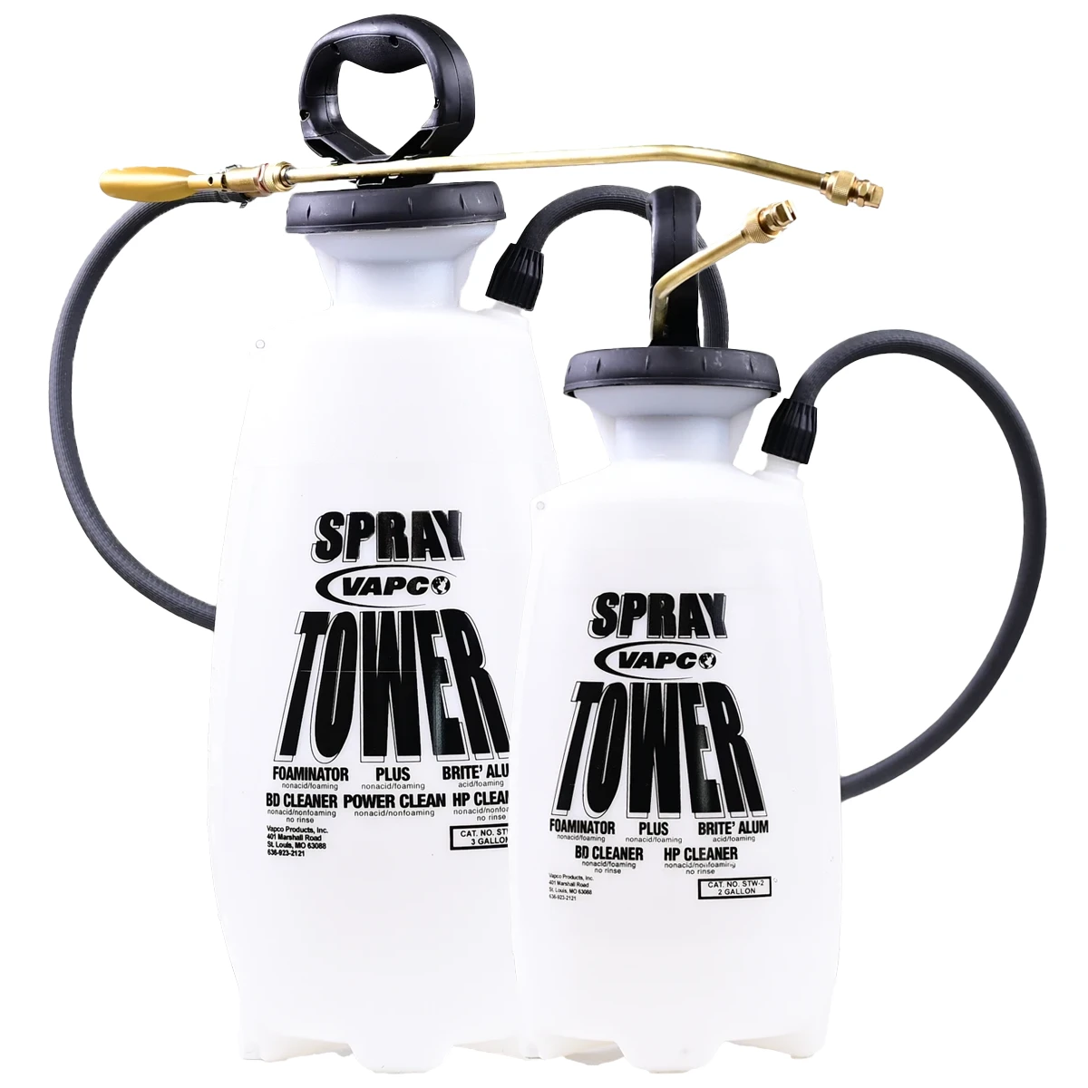 SPRAY TOWERS – are translucent white poly tanks with a funnel top, threaded outlet, and safety lock. 18” poly or extension rod with a fan tip nozzle. 42” chemical-resistant hose on the poly or 72” chemical-resistant hose on the brass. Nitrile barrel gaskets and check valve. Poly shut-off with viton gaskets or brass plated shut-off with viton gaskets.